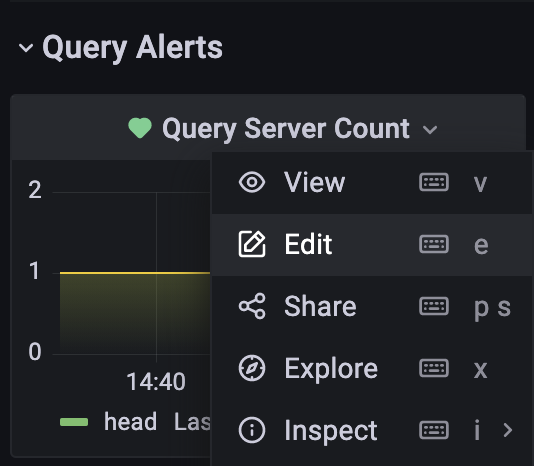 By default, every chart sets an alert threshold. When a metric exceeds the threshold, Grafana alerts you to a potential problem. For example, a Hydrolix cluster might run 10 query peers. You could configure a threshold to alert you if any one of those 10 query peers become unavailable. To change an alert threshold: